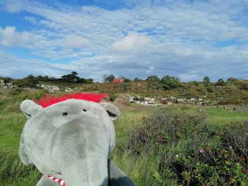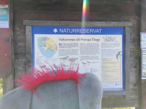 Der Samstag startete zwar sonnig, es stellte sich aber bald heraus, dass ein kühler Wind wehte, wodurch es nicht so schön war wie am Vortag. Trotzdem brachen wir am späten Vormittag zu einem Ausflug auf. Unser erstes Ziel war der Morups Tånge Fyr. Dieser liegt idyllisch am Naturschutzgebiet Morups Tånge. Auf dem Weg dorthin mussten wir sogar über eine Kuhweide fahren (nicht im Bild).