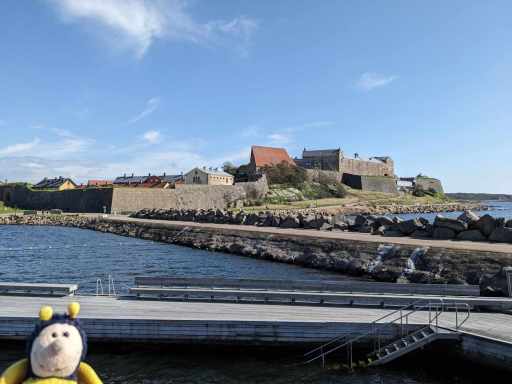 Der Vormittag startete mit Regen, glücklicherweise hörte er jedoch bald auf und die Wolken lichteten sich zaghaft. Mit einiger Mühe schafften wir es, Schatzi-Moppel zu einem Ausflug zu überreden. Wir fuhren in das etwa 20 Minuten nördlich gelegene Varberg. Zunächst gab es in einem hübschen Café ein kleines Mittagessen, dann bummelten wir ein bisschen herum.
