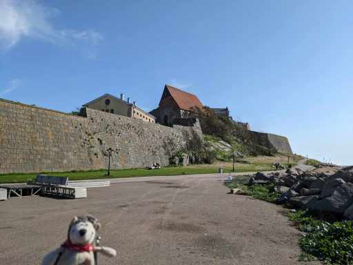 Da wir einen Leuchtturmbesuch geplant hatten, war der Fanti dabei, saß aber noch im Auto. Nach kurzer Beratung beschlossen wir, zu dem Leuchtturm an der Promenade entlang zu Fuß zu gehen und den Fanti dafür abzuholen. Diese Aufgabe übernahm das Schatzi, während der Moppel mit uns an der Festung herumlief und fleißig knipste.