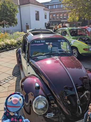 Anschließend ging es weiter nach Falkenberg. Dort suchten wir uns einen Parkplatz und zogen los, wobei der Fanti im Auto blieb. Als wir die Innenstadt erreichten, befanden wir uns plötzlich mitten in einer Oldtimer-Ausstellung. Das Bienchen war begeistert.