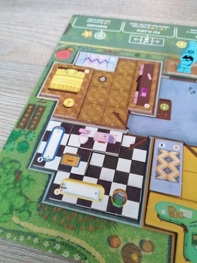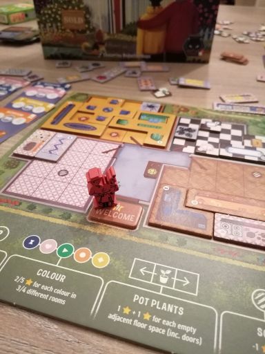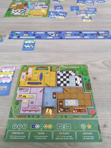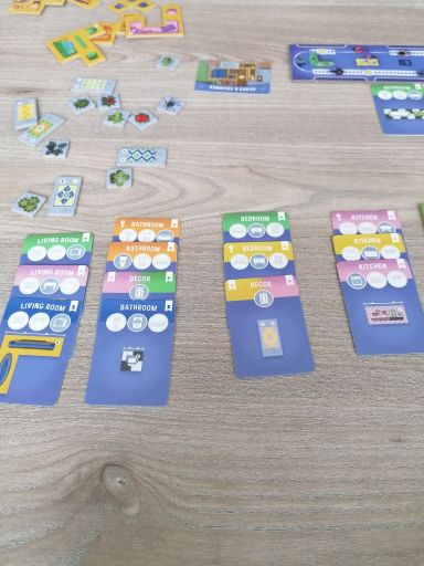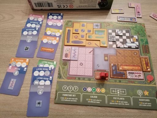 Dadurch, dass man im Spiel zu zweit ungesehen die Hälfte der Plättchen aussortiert, kann ein gewisses Ungleichgewicht entstehen (wir hatten zB in einer Partie keine Betten, dafür aber gleich mehrere Badewannen), für das man womöglich irgendwann eine Hausregel finden wird 🛀