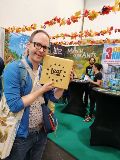 Das Spiel haben wir am Stand von Weird City Games vom Autor Tim Eisner höchstpersönlich gekauft und zwar ausnahmsweise in der Deluxe-Version, weil uns die so gut gefallen hat 🍄